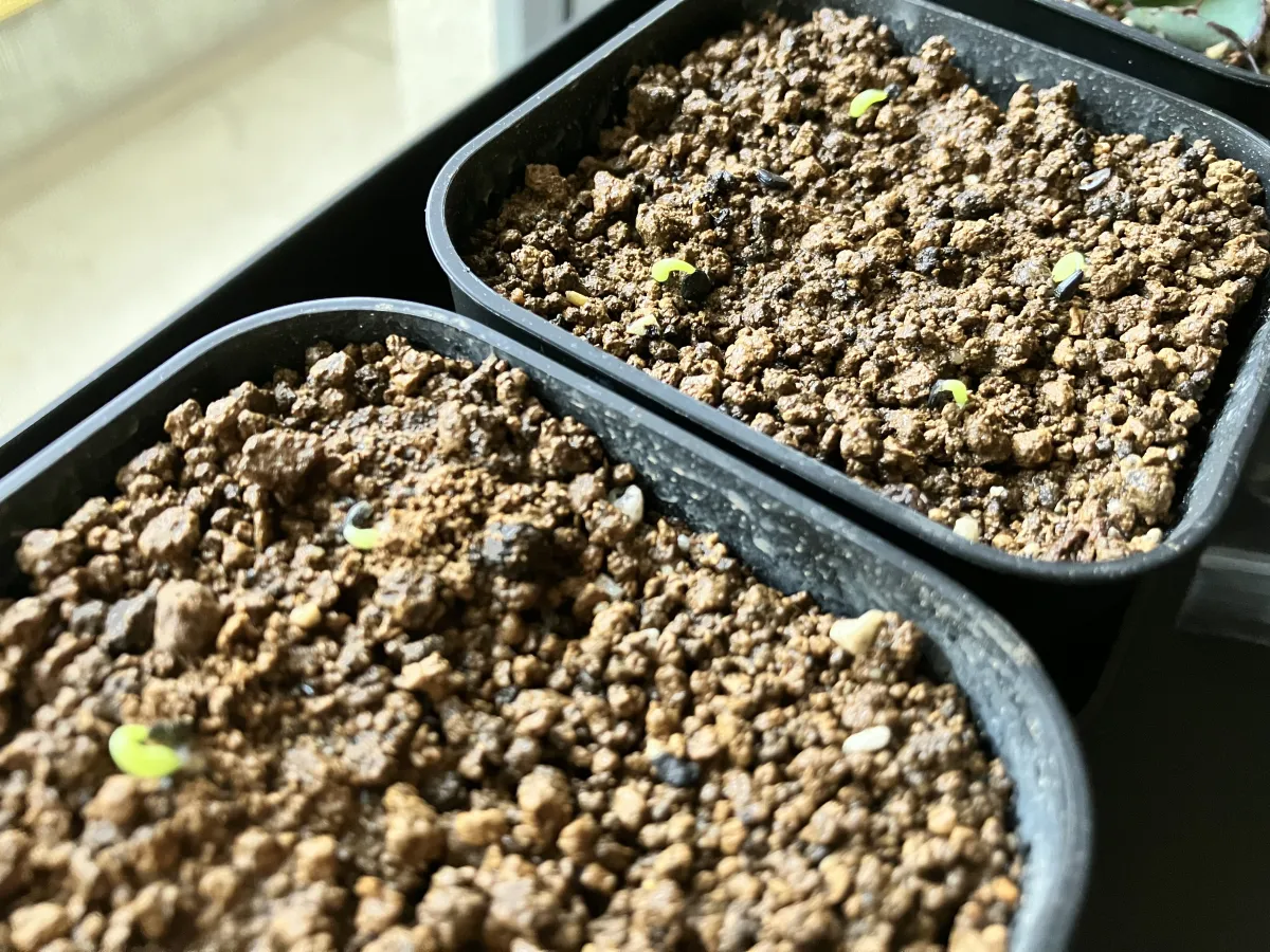 なかなか発芽せず、途中腰水プラスラップをふんわり掛けました。そしたらまもなく発芽。嬉しいです!