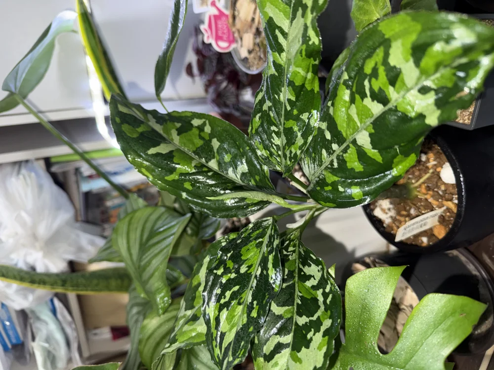 アグラオネマピクタムは、迷彩柄の斑で、主に3色ですが、2色や4色などの株もあり、原生地によって斑の模様や、葉の細さが違うので、コレクション性があります高い湿度で管理をすると育てやすいです弱光の3000ルクス以下で葉の色がくっきりでます環境の変化に弱くて、湿度が高いと葉が大きくなりやすいです体験談ですが、無機質で水やりを多くして管理すると続々と新芽が出てきました肥料も定期的にやっています斑が2色の株はバイカラー、3色はトリカラー、4色はマルチカラーと言います写真の一枚目はトリカラー、2枚目はバイカラー、3枚目はマルチカラーです。ちなみに株の色の数関係なく幼苗などで体力が少ない場合などは色が2色など少なかったりします